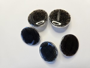 Guzik na srebrnej stopce, brązowy pokryty żywicą.