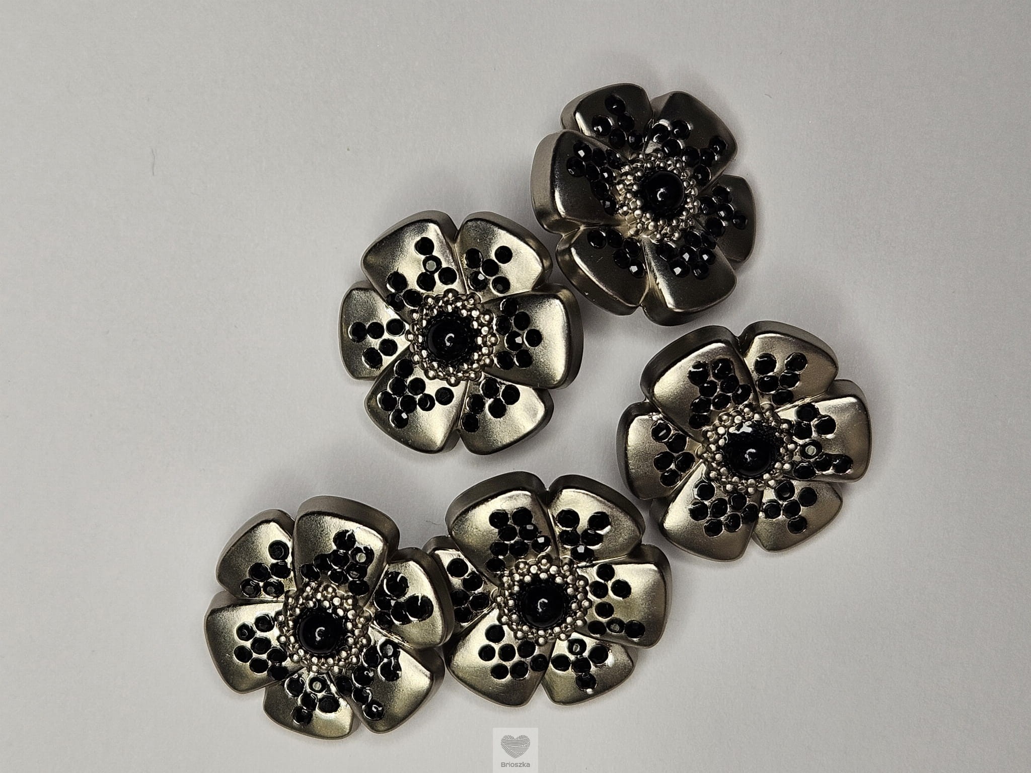 Guzik metalowy C-4446/28" - srebrny kwiat z cyrkoniami