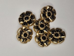 Guzik metalowy C-4446/28" - złoty kwiat z cyrkoniami