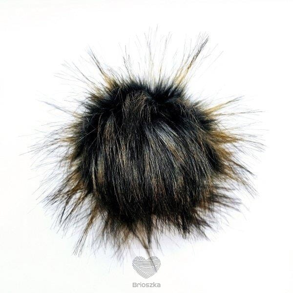 Pompon sztuczne futro - 120 mm - czarno-brązowy