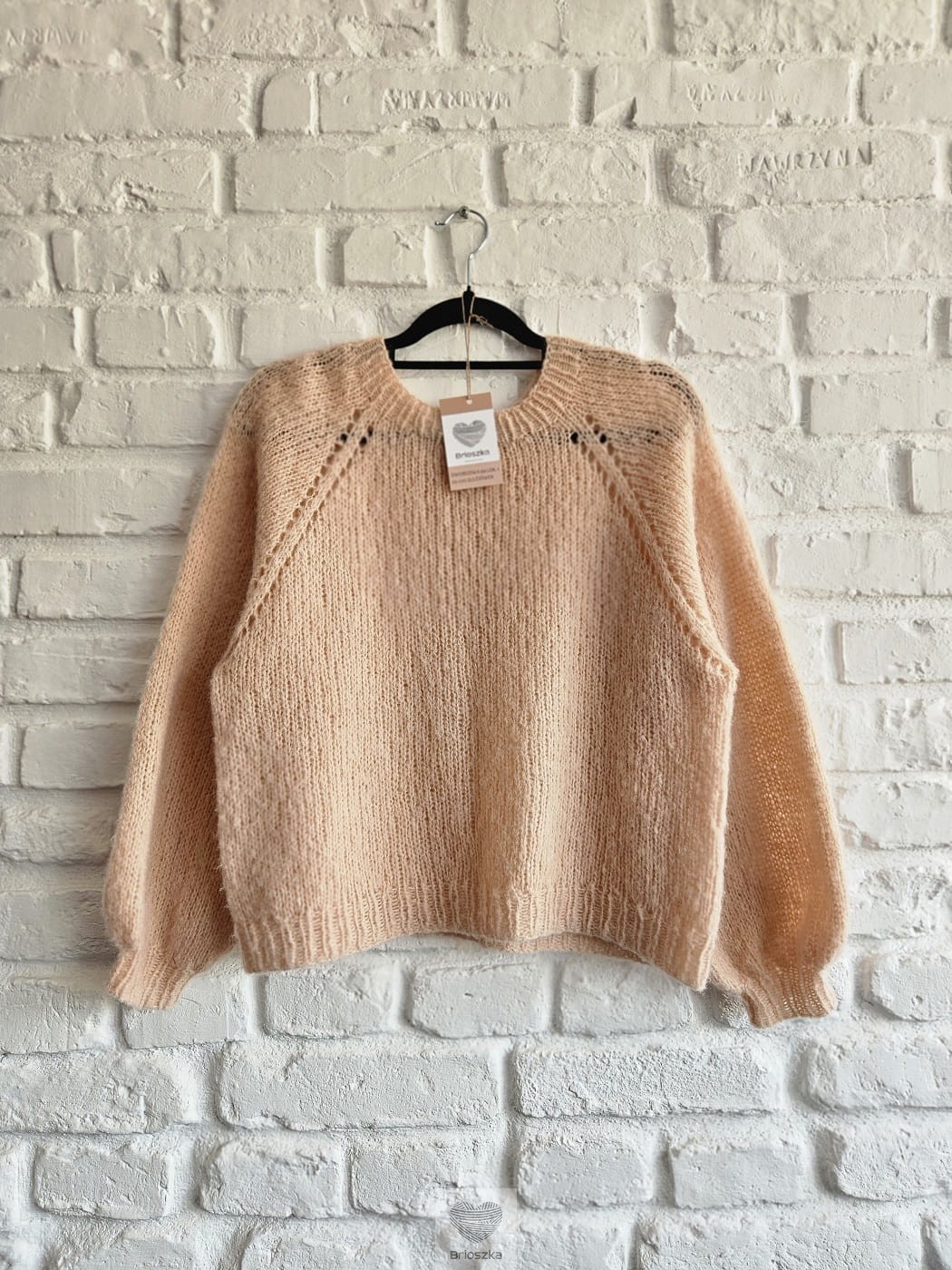 Każdy detal tego swetra przemyślany jest z dbałością o komfort i estetykę. Wyjątkowa mieszanka włóczek zapewnia doskonałą izolację cieplną, jednocześnie pozwalając skórze oddychać, co czyni go idealnym wyborem na chłodniejsze dni. Kolor łososiowy nadaje mu subtelności i delikatności, podkreślając naturalny blask materiałów, z których został wykonany.
