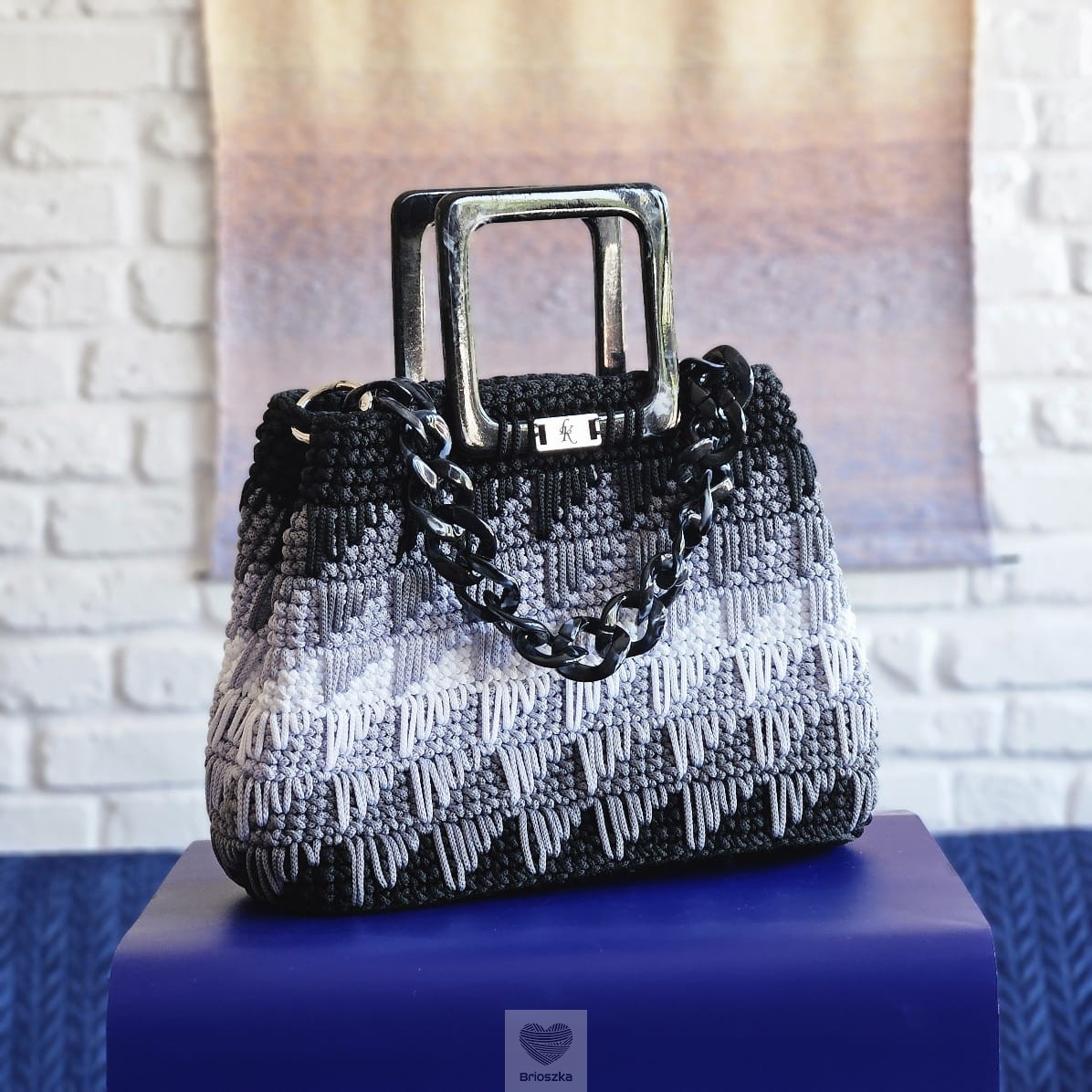 Ręcznie robiona torebka w odcieniach czerni i szarości – elegancja w stylu handmade