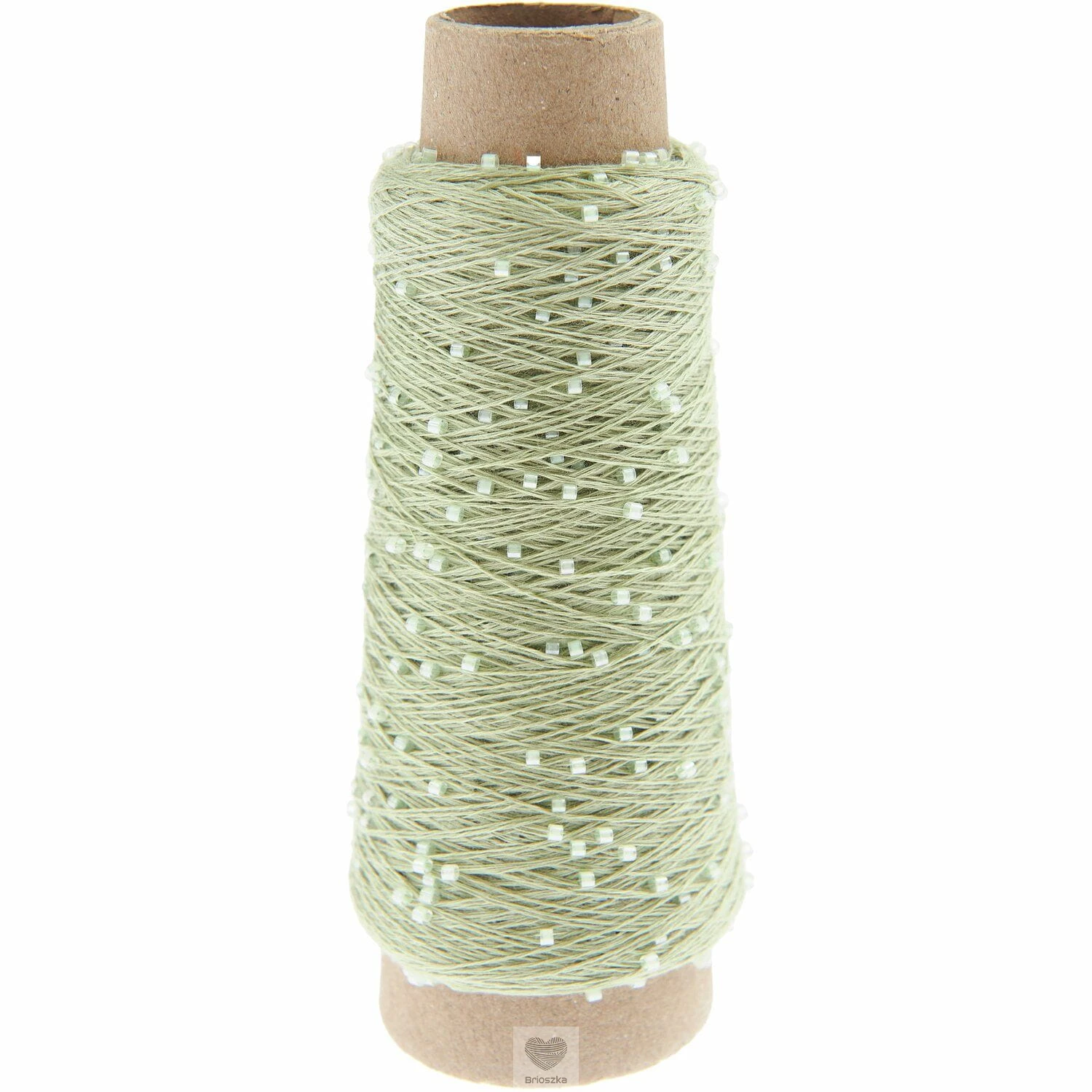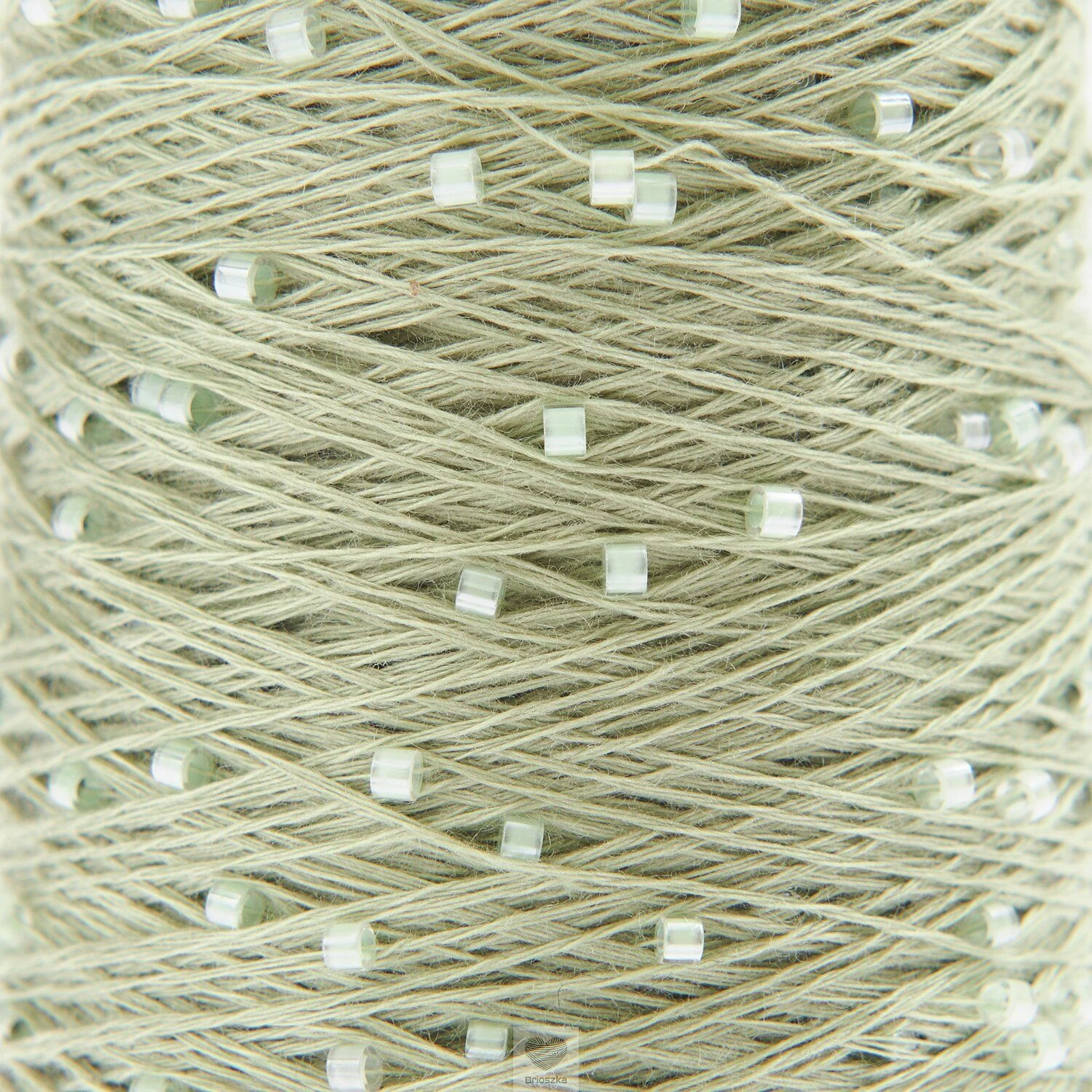 Przędza jest skręcona, co pozwala szklanym koralikom przesuwać się tylko nieznacznie wzdłuż nici, nadając tkaninom subtelną fakturę i akcenty.