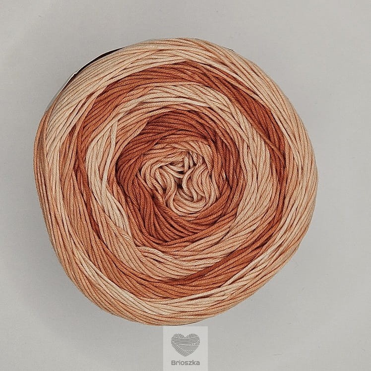 Włóczka bawełniana Troca-Tintas to doskonała włóczka ombre wysokiej jakości do wszelkich wyrobów na lato. Wyjątkowa gama kolorystyczna pozwala puścić wodze fantazji. Czy to lekkie koszulki, czy przewiewne tuniki – wszystko będzie przerabiało się z wyjątkową przyjemnością. Prać ręcznie. Po zakończeniu zawinąć w czysty ręcznik, aby usunąć nadmiar wody a następnie wysuszyć na płasko.