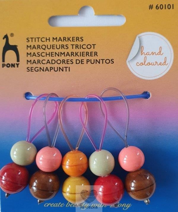 Ozdobne, drewniane znaczniki oczek firmy PONY. Ręcznie malowane.