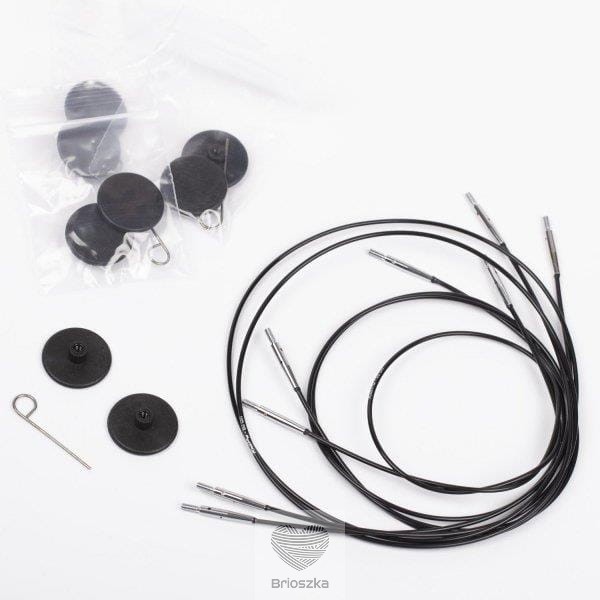Każdy zestaw zawiera 1 żyłkę, 2 końcówki i 1 klucz łączący, pasują do drutów wymiennych DROPS Pro Romance i DROPS Pro Classic.