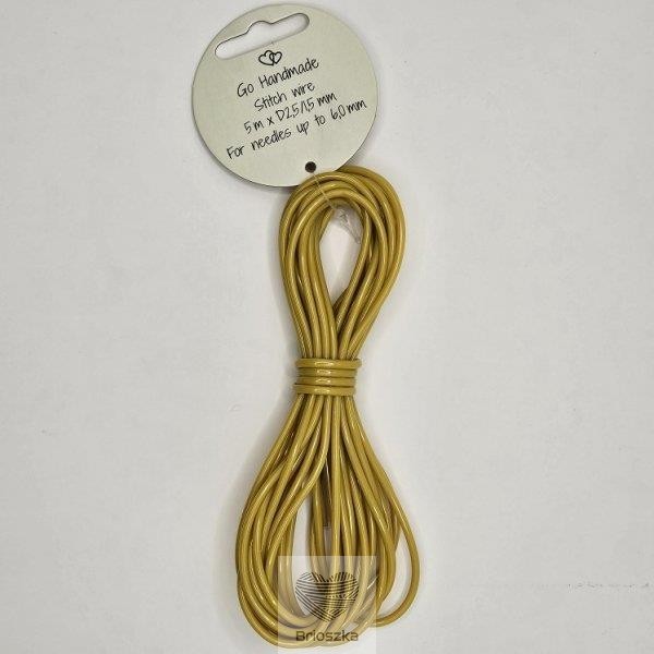 Żyłka pomocnicza Go Handmade pozwala na szybkie i wygodne zabezpieczenie oczek, zdjętych z drutu. Pomoże Ci oddzielić oczka rękawów a także ułatwi przymierkę dzianiny w trakcie dziergania. Wystarczy nałożyć tę żyłkę na koniec druta, docisnąć by żyłka nie zsunęła się z druta i przesunąć na nią oczka.